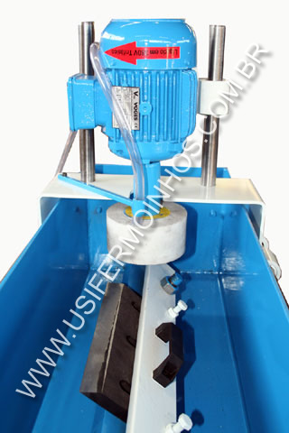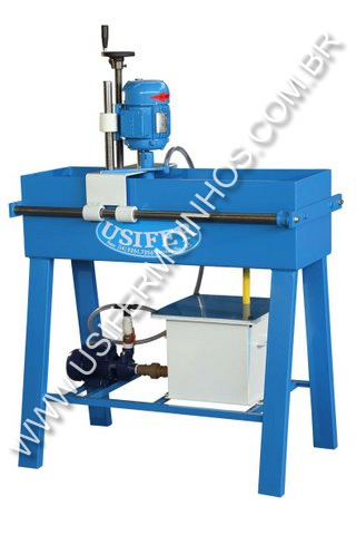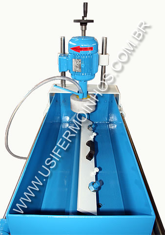 Projetada especialmente para afiação de navalhas de moinhos, com bomba para refrigeração contínua, permite o trabalho sem perder as propriedades de dureza do aço.Regulagem de ângulo de 0º a 90º , sendo rebodo com diâmetro de 127 mm, movimentação de carro manual .